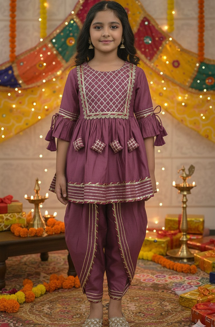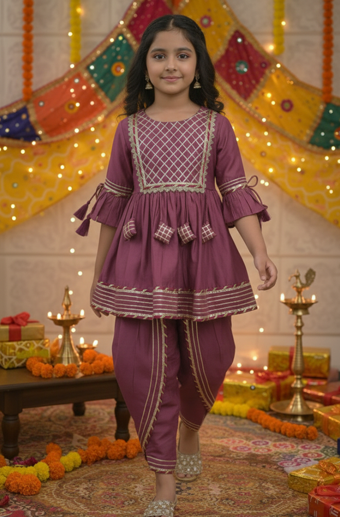 Add festive charm to your little girl’s wardrobe with this Girls Ethnic Kurti and Dhoti Pant Set, crafted in soft cotton fabric for all-day comfort. Featuring a beautifully printed kurti paired with a stylish dhoti pant, this outfit blends traditional elegance with easy wearability—perfect for celebrations and special occasions.