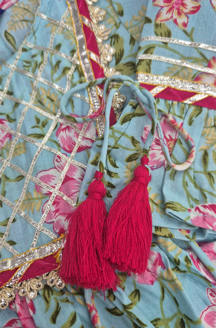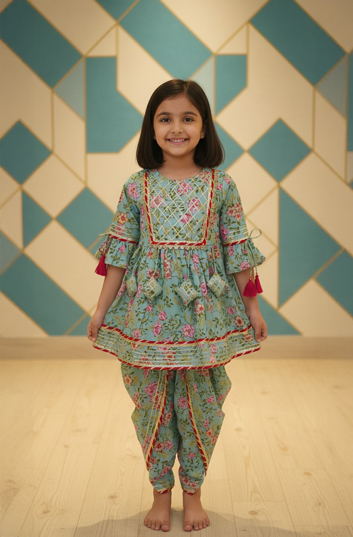 Girls Ethnic Wear Kurti & Dhoti Pant Set – Blue & Pink at Cotton Cuddle Girls Ethnic Wear Kurti & Dhoti Pant Set – Blue & Pink - Cotton Cuddle