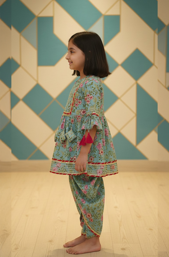 Home Girl's Wear Girl’s Ethnic Wear Kurti and Dhoti pant set Girls Ethnic Wear Kurti & Dhoti Pant Set – Blue & Pink
