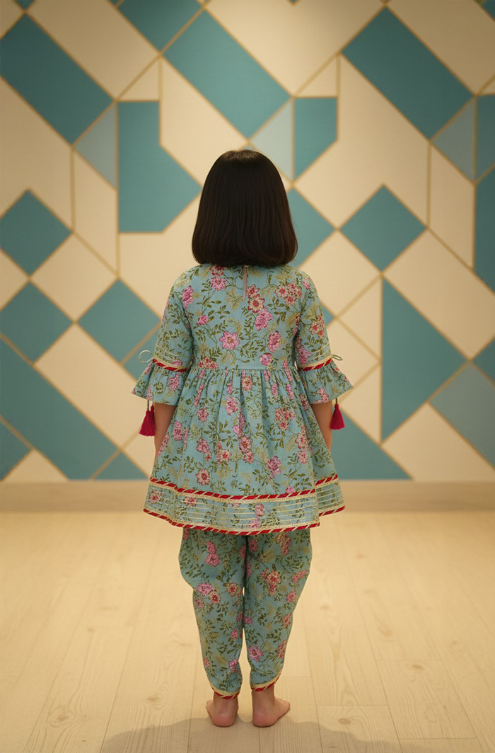 Girls Ethnic Wear Kurti & Dhoti Pant Set – Blue & Pink