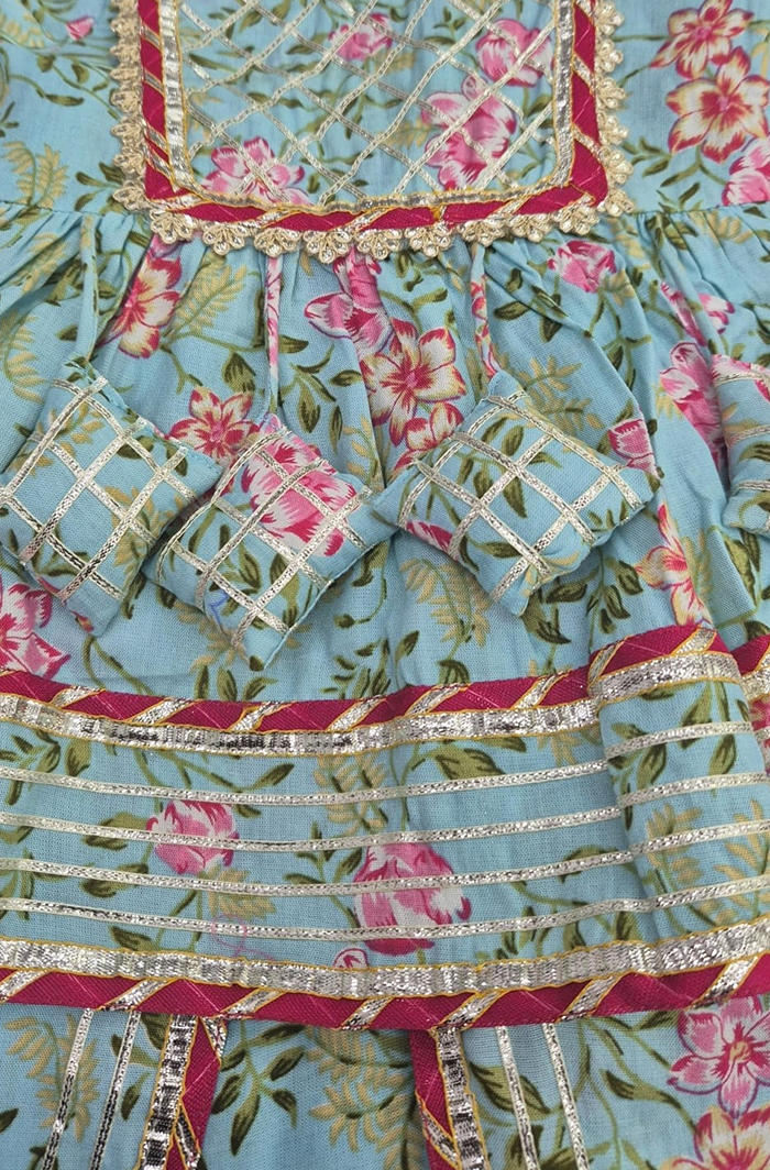 Let your little one shine in this elegant Girls Ethnic Kurti and Dhoti Pant Set, crafted from soft and breathable cotton fabric. Designed with beautiful blue and pink prints, the kurti features delicate detailing and is paired with a comfortable dhoti pant, making it perfect for festive celebrations and special occasions.