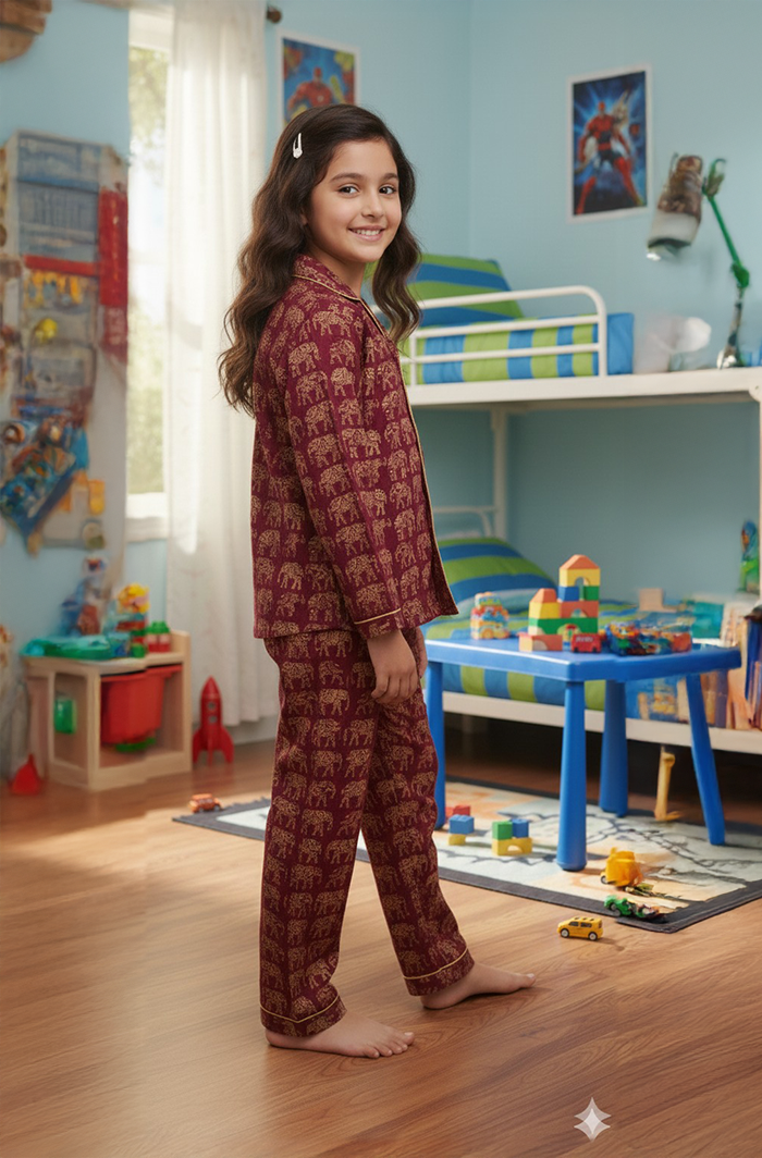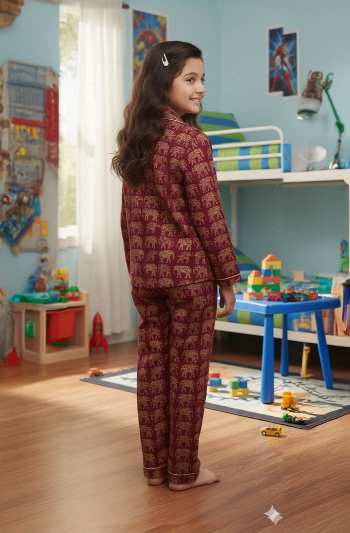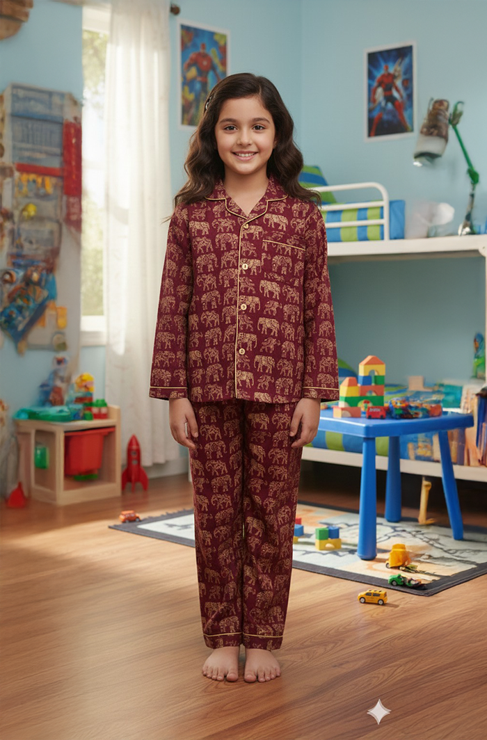 Wrap your little one in comfort and culture with this CottonCuddle girls nightsuit, crafted from soft, breathable organic cotton. The rich maroon base with adorable elephant motifs brings a traditional touch, while the lightweight fabric ensures all-night comfort. Designed to be gentle on sensitive skin, this nightsuit is perfect for peaceful sleep and relaxed bedtime routines.