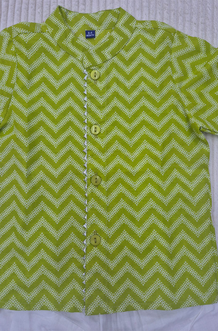Designed for comfort and ease, this Green infant kurta and dhoti set is ideal for everyday wear. The front-open kurta with neat bijiya detailing makes dressing simple, especially for infants. Made from soft cotton 60×60 fabric, it feels light on the skin and allows your baby to move freely. The matching dhoti completes the traditional look, making the set suitable for both regular use and special occasions.