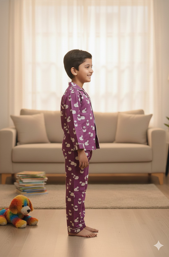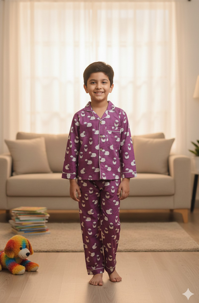 Make bedtime cozy and happy with this CottonCuddle kids’ nightsuit, crafted from soft, breathable organic cotton. Designed to keep your child comfortable through the night, this lightweight nightsuit is gentle on sensitive skin and perfect for Indian weather. The playful sleep-inspired print adds a fun touch your child will love.