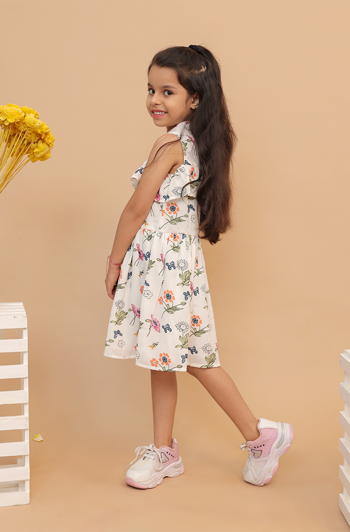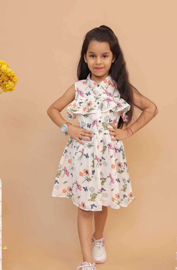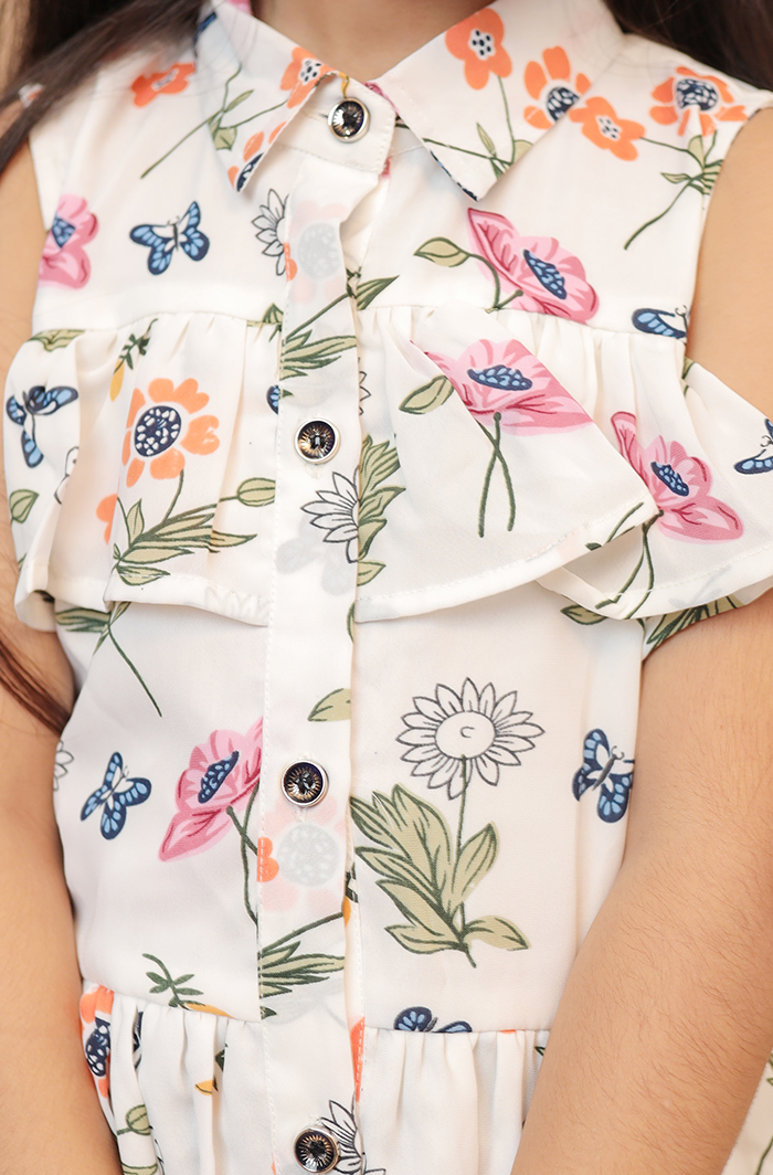 The Off-White Off-Shoulder Frill Dress is a fashionable and trendy outfit. The frill dress is great for occasions as well as casual get-togethers due to its off-the-shoulder style and stunning off-white and subtle polka-dot print, making it cute and stylish. The poly-georgette fabric makes it comfortable, lightweight, soft, and easy to move in.