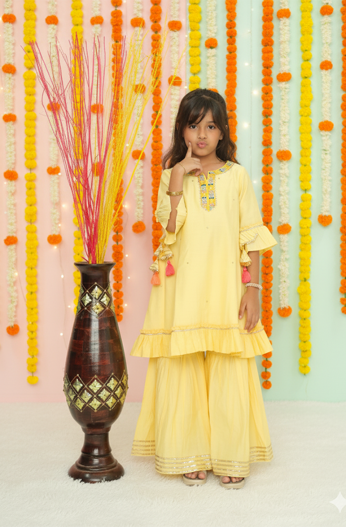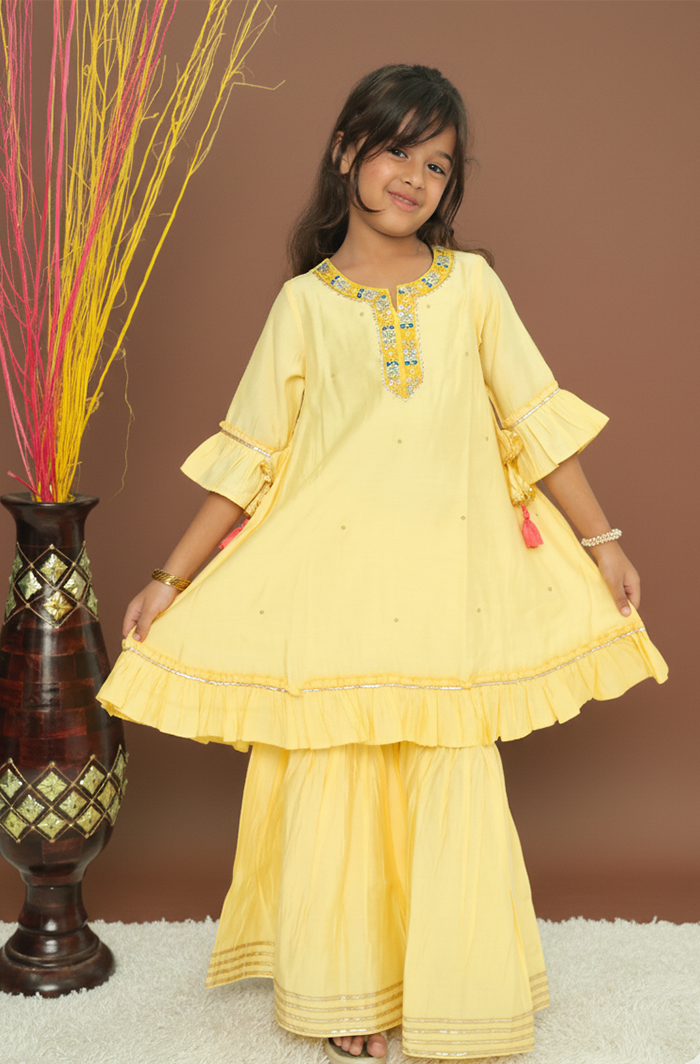 Girls Ethnic Wear Kurti and Dhoti pant set-yellow